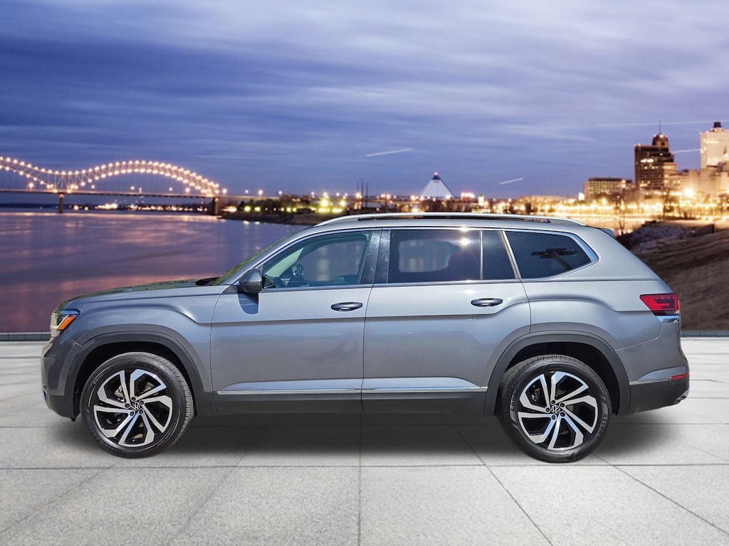 Trailer Hitch Extras, 12 Speakers, 2nd-Row Dual Captain's Chairs, 3.60 Axle Ratio, 3rd row seats: split-bench, 4-Wheel Disc Brakes, ABS brakes, Air Conditioning, Alloy wheels, Auto High-beam Headlights, Auto-dimming Rear-View mirror, Automatic temperature control, Brake assist, Bumpers: body-color, Compass, Delay-off headlights, Driver door bin, Driver vanity mirror, Dual front impact airbags, Dual front side impact airbags, Electronic Stability Control, Emergency communication system: VW Car-Net services (capabilities require enrollment or subscription), First Aid Kit, Four wheel independent suspension, Front anti-roll bar, Front Bucket Seats, Front Center Armrest, Front dual zone A/C, Front fog lights, Front reading lights, Fully automatic headlights, Heated door mirrors, Heated front seats, Heated rear seats, Heated steering wheel, Heavy Duty Trunk Liner w/VW CarGo Blocks, Htd/Actively Ventilated Comfort Front Sport Seats, Illuminated entry, Leather Shift Knob, Low tire pressure warning, Memory seat, Navigation System, Occupant sensing airbag, Outside temperature display, Overhead airbag, Overhead console, Panic alarm, Passenger door bin, Passenger vanity mirror, Perforated Vienna Leather Seating Surfaces, Power door mirrors, Power driver seat, Power Liftgate, Power moonroof, Power passenger seat, Power steering, Power windows, Privacy Cover, Radio data system, Rain sensing wipers, Rear air conditioning, Rear anti-roll bar, Rear audio controls, Rear Bumper Applique in Chrome, Rear reading lights, Rear seat center armrest, Rear window defroster, Rear window wiper, Remote keyless entry, Roadside Assistance Kit, Roof rack: rails only, Rubber Mats Kit - Captain's Chairs, Security system, Speed control, Speed-sensing steering, Split folding rear seat, Spoiler, Standard Suspension, Steering wheel mounted audio controls, Tachometer, Telescoping steering wheel, Tilt steering wheel, Traction control, Trip computer, Turn signal indicator mirrors, Variably intermittent wipers, Ventilated front seats, VW Care, and Wheels: 20" 5-Spoke 2-Tone Machined Alloy. Odometer is 33008 miles below market average!